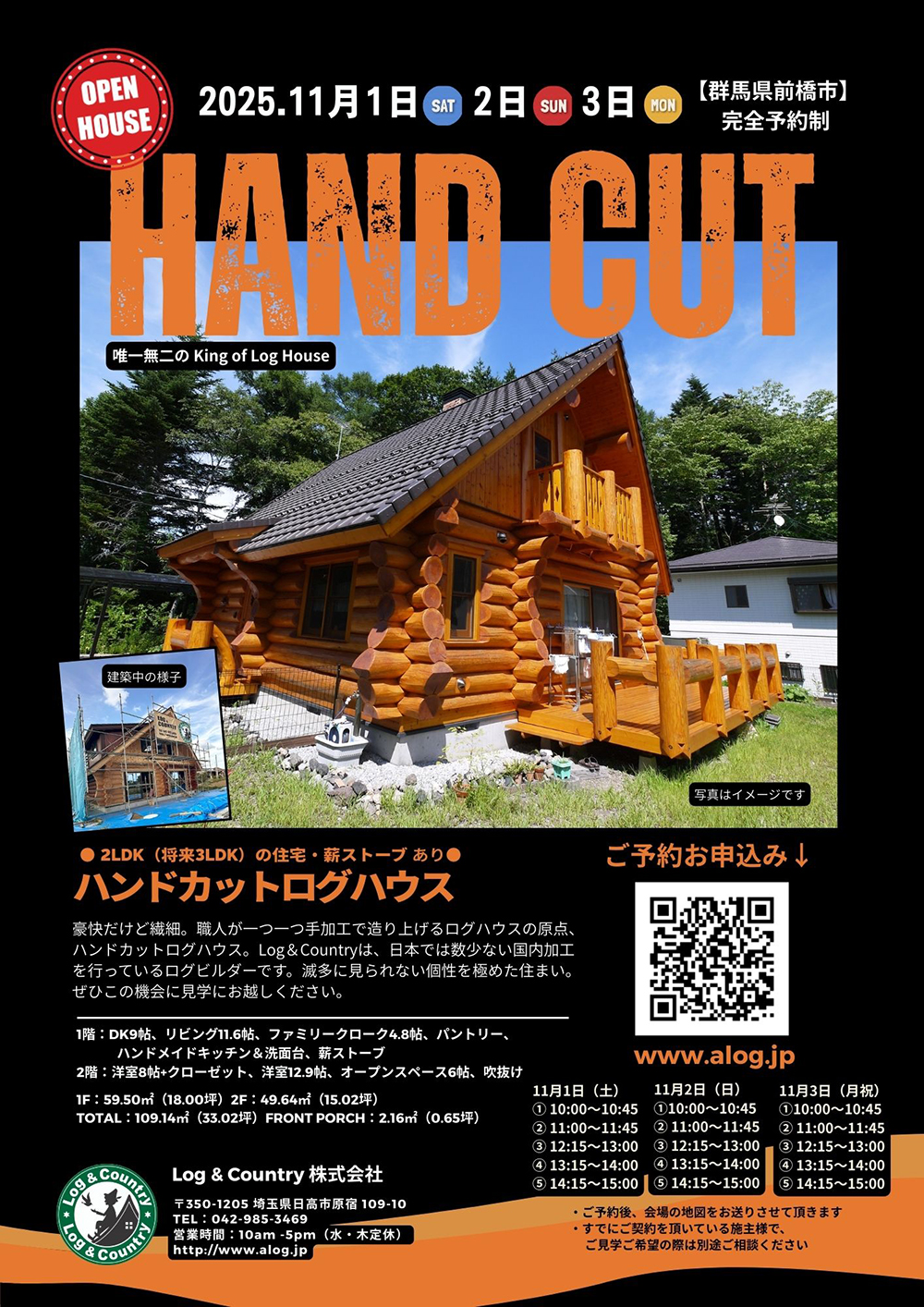 【完成見学会】ハンドカットログハウス完成見学会 in 群馬県前橋市 11月1日(土)・2日(日)・3日(月・祝)