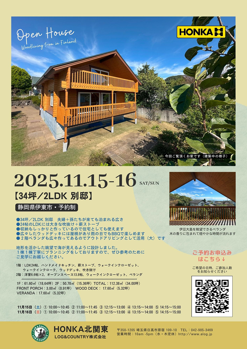 【完成見学会】ログハウス完成見学会 in 伊豆・伊東市 11月15日(土)・16日(日)