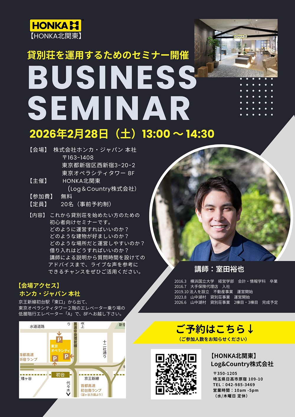 貸別荘 (初心者向け)運用セミナー 2月28日(土) ホンカ東京(新宿)ショールーム