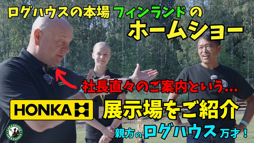 ログハウスのホンカも展示場をオープンしているとのことで、マルコ社長に案内をしていただき
